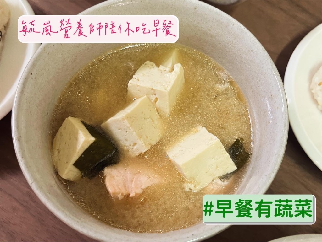 :豆魚蛋肉類:板豆腐、鮭魚、味增